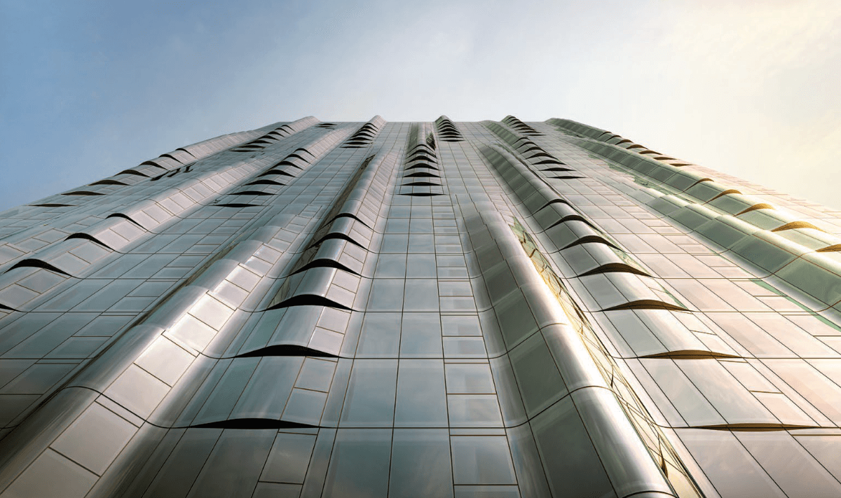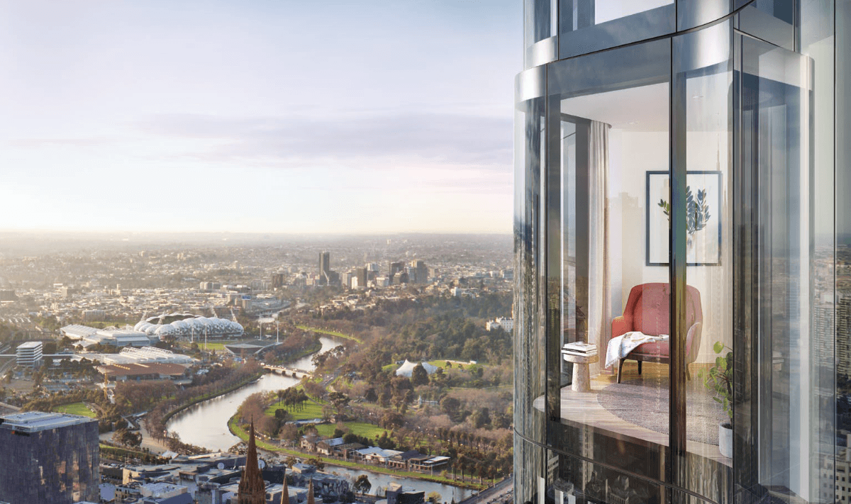 Hai tòa tháp của 380 Melbourne nổi bật với hình khối mềm mại, lấy cảm hứng từ dòng thác ánh bạc, cùng hệ cửa sổ lồi giúp mở rộng không gian và tối đa hóa tầm nhìn.