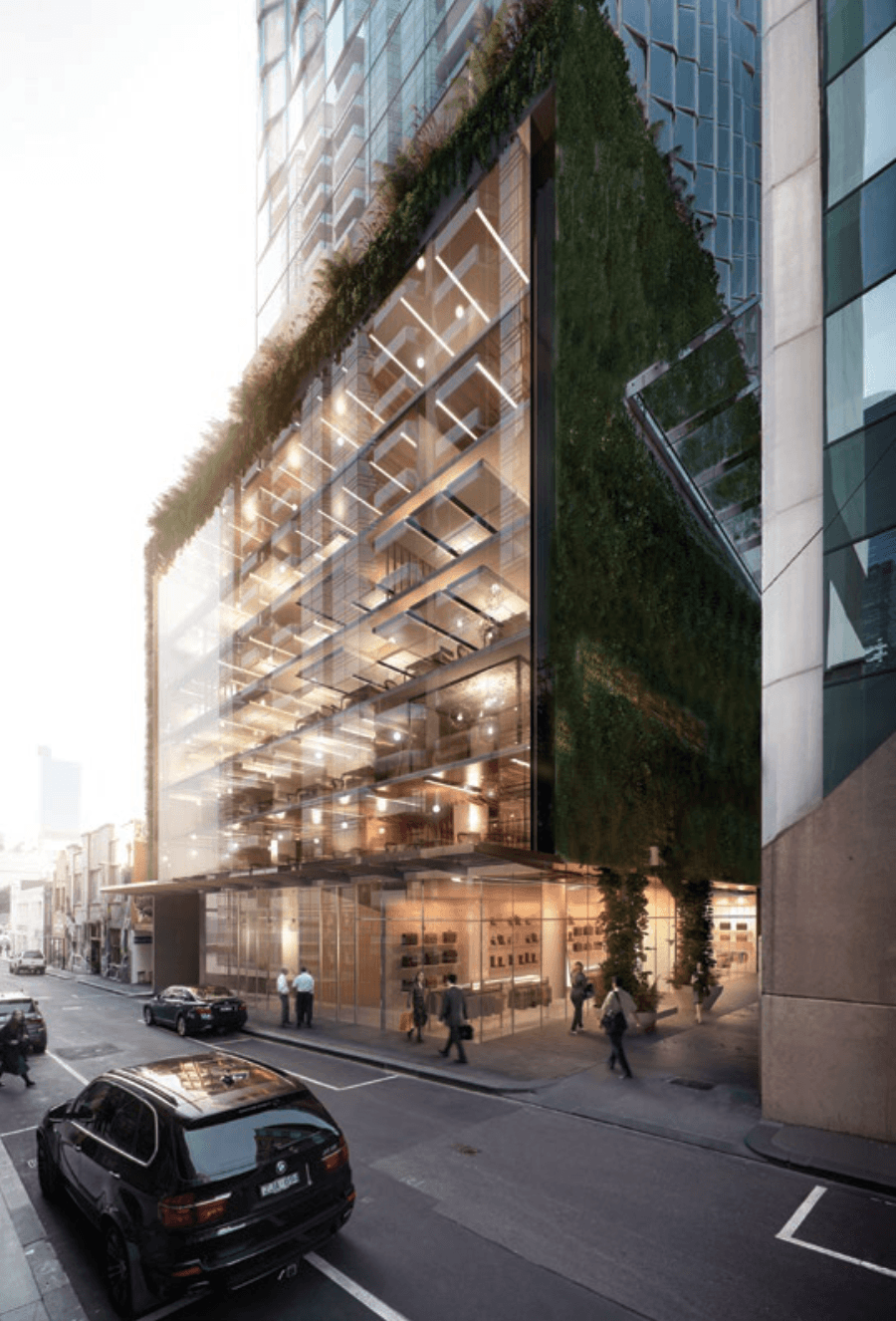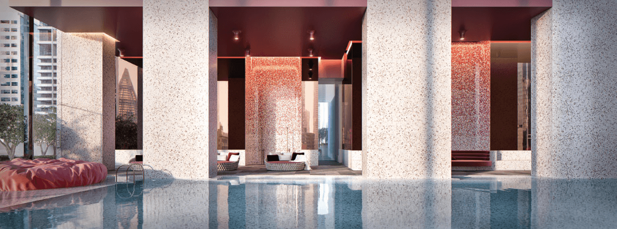 Khối đế được quy hoạch thông minh, kết nối căn hộ, khách sạn, bán lẻ và các lối đi bộ có mái che, phủ xanh bởi tường cây – tái hiện rõ nét văn hóa laneway đặc trưng của Melbourne.