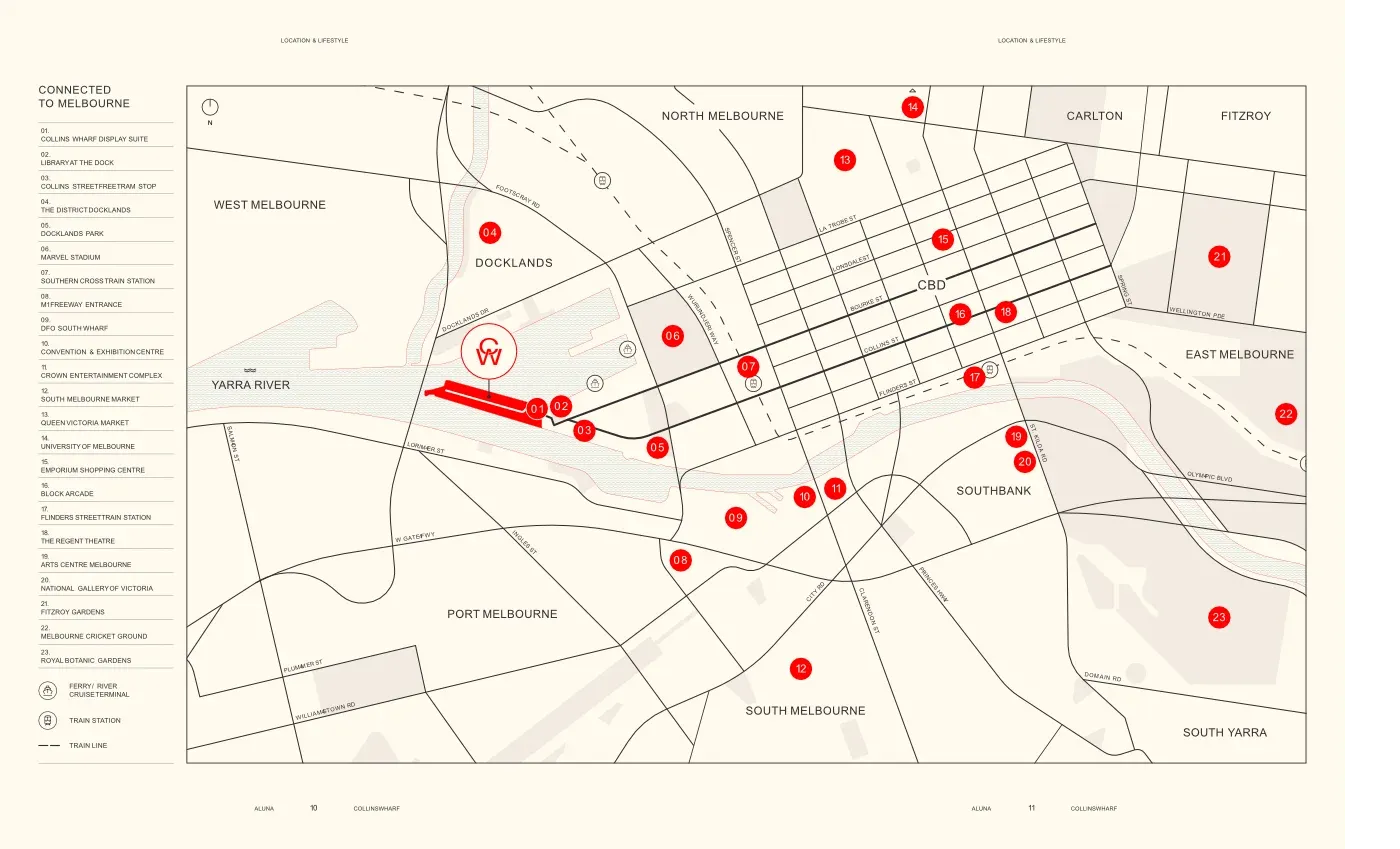 Tọa lạc tại 989 Collins Street, Docklands, Aluna là giai đoạn thứ 4 của siêu dự án Collins Wharf do Lendlease phát triển – thương hiệu đứng sau những công trình mang tầm quốc tế như Barangaroo Sydney hay Melbourne Quarter.