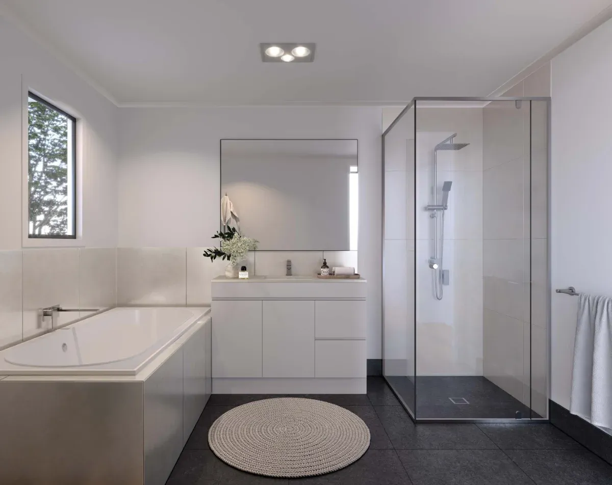 • Phòng tắm hiện đại với chi tiết tối giản, chất lượng cao