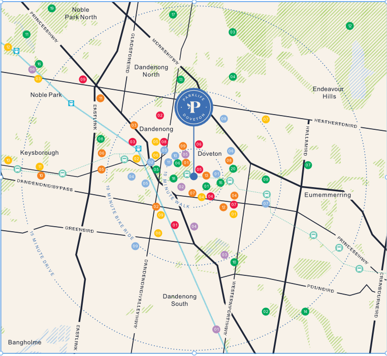 Chỉ vài phút đến ga Dandenong bằng ô tô, xe buýt hoặc xe đạp, cùng hệ thống giao thông huyết mạch như Monash Freeway, Eastlink và Princes Highway, Parklife giúp cư dân dễ dàng di chuyển đến Melbourne CBD, trường học và các trung tâm thương mại lớn.